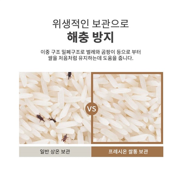 이중 실리콘 구조의 원터치 대용량 쌀통 보관함!